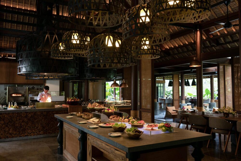 Nestled along the mystical Ayung River and embraced by Ubud’s lush jungle, Ayung Riverside Restaurant offers an al-fresco dining experience that celebrates the art of Southeast Asian BBQ & Grill. By day, unwind by the pool with light bites and refreshing cocktails, while evenings come alive with the aroma of spices, expertly grilled specialties, and the glow of candlelight. Blending vibrant flavors with a romantic riverside setting, each moment here is crafted to be as unforgettable as the view itself.