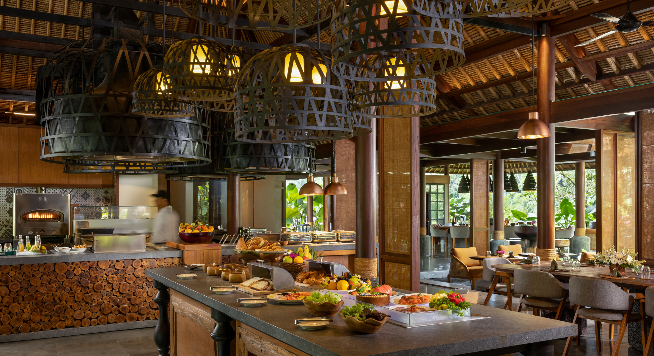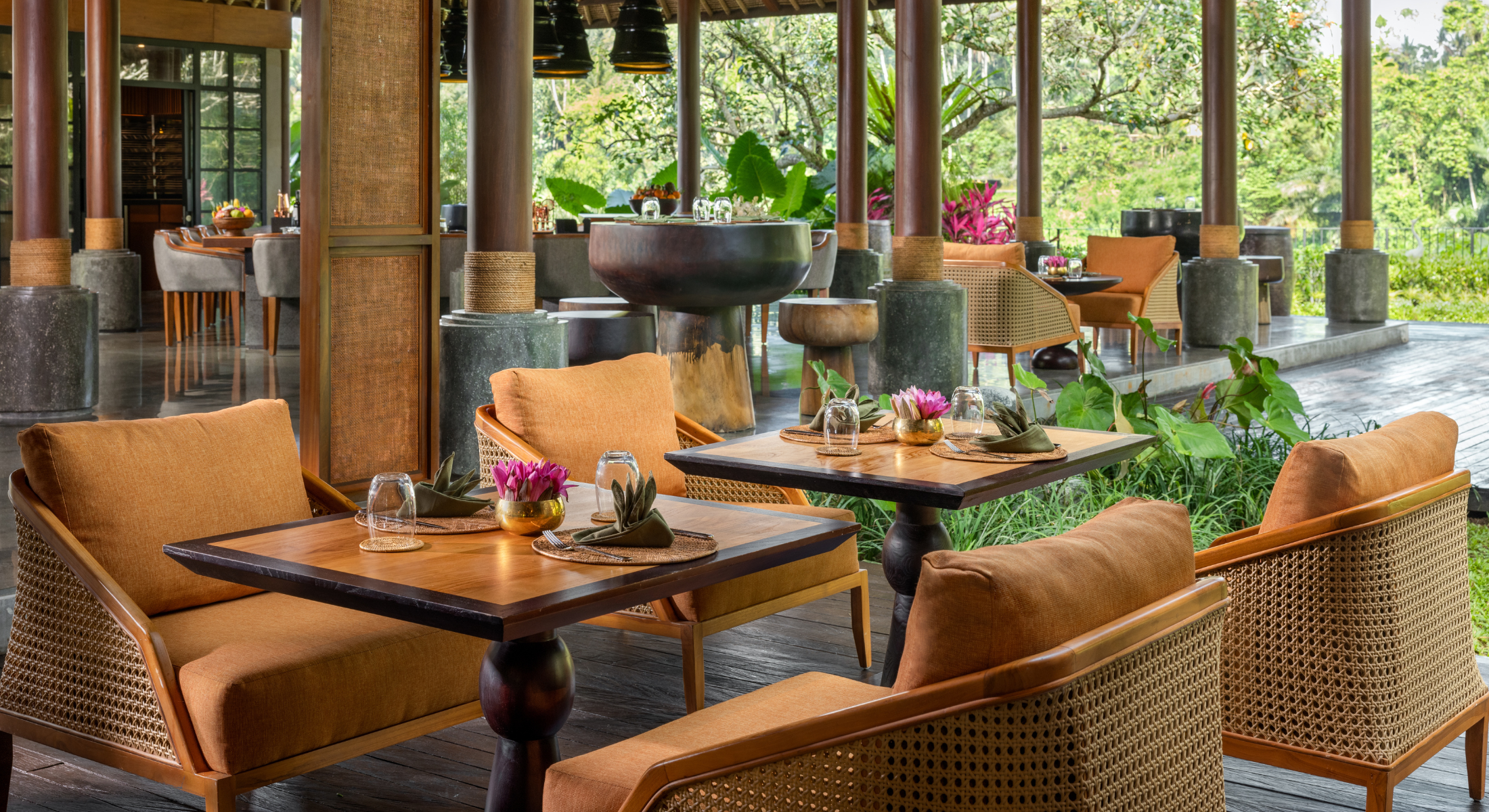 Nestled along the mystical Ayung River and embraced by Ubud’s lush jungle, Ayung Riverside Restaurant offers an al-fresco dining experience that celebrates the art of Southeast Asian BBQ & Grill. By day, unwind by the pool with light bites and refreshing cocktails, while evenings come alive with the aroma of spices, expertly grilled specialties, and the glow of candlelight. Blending vibrant flavors with a romantic riverside setting, each moment here is crafted to be as unforgettable as the view itself.